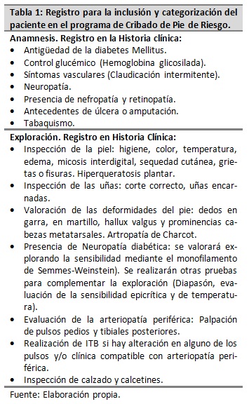 la implantación de programas de cribado del pie en el paciente diabético. El