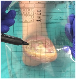 de una fotografía de la úlcera tomada perpendicularmente al plano de la misma,