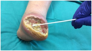 Cuando el hisopo interno llega al punto más profundo de la herida, se marca un