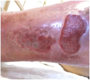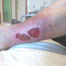 2 continuous post-phlebitic lesions in the external malleolar area of the left