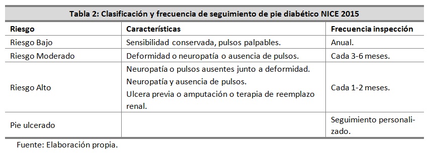 pie en este tipo de pacientes, clasificándolo según el riesgo detectado para