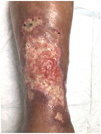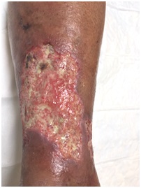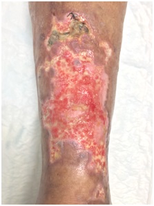 patient with a venous ulcer using the acronym DOMINATE as an ulcer management