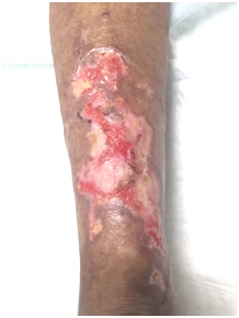 debridement were performed. Subsequently, to reduce oedema, manage exudate and