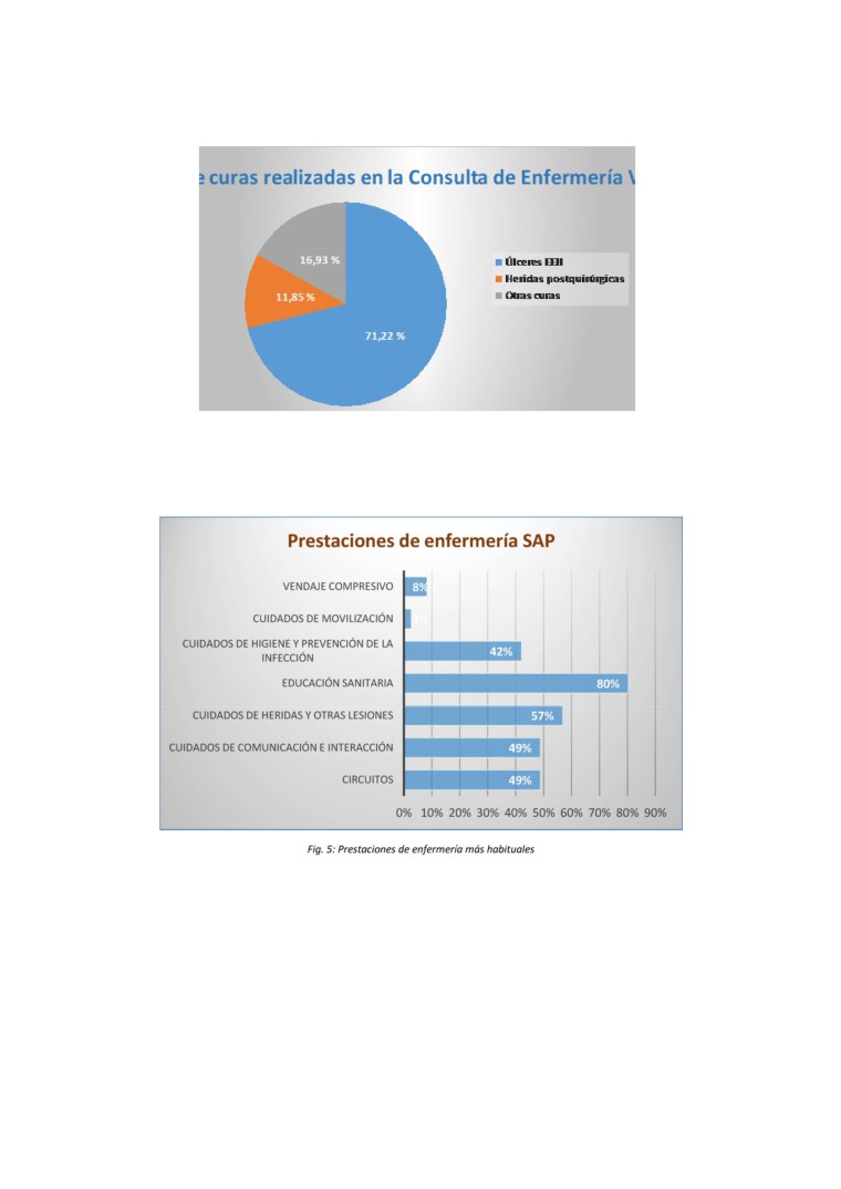 la mayoría de prestaciones enfermeras registradas fueron: “Educación sanitaria” y “Cuidados de heridas y otras lesio-